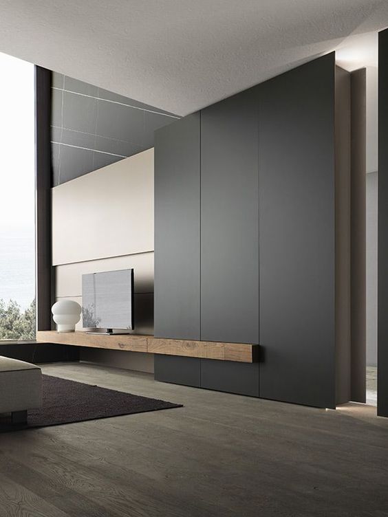 Ils seront utilisés pour la conception du mobilier TV, l’habillage de la cheminée et la réalisation des nouvelles portes et encadrement de baies qui délimitent de la sorte les passages.